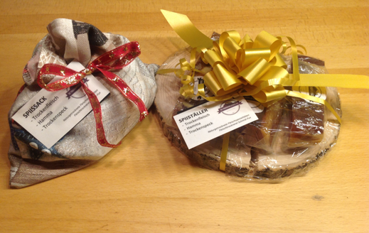 Schenken Sie Gaumenfreude mit einem „Spiissack“ oder „Spiisteller“ mit schmackhaften Trockenfleisch, nach Wunsch ergänzt mit Walliser Wein und regionalem Käse. Gerne beraten wir Sie und erstellen individuelle Geschenkpackungen gemäss Ihren Vorgaben.Fleischfondue